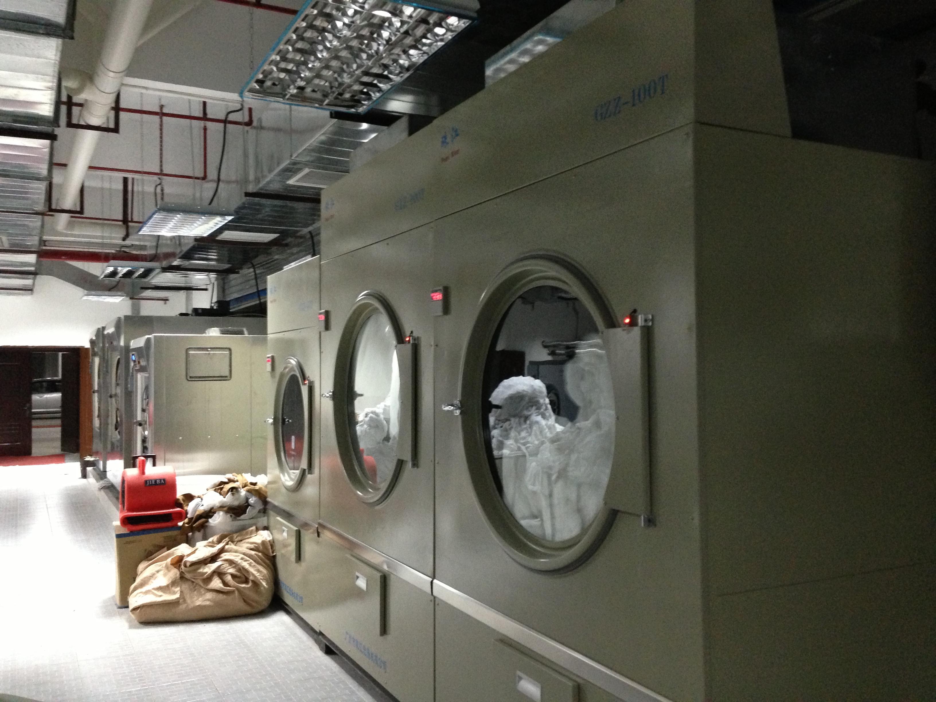 大概有500多張病床,病服、手術包、醫生服。病床上包括(病服、床單、枕套、被套)大概有2.5kg,病床的洗滌量大概在1250kg.配置兩臺100kg的全自動洗脫機,兩臺80kg干衣機。床單被套燙平,就使用3米長的雙輥筒熨平機。醫生服大概1kg, 70位醫生,醫生服的洗滌量大概在70kg,配置一臺50kg洗脫機,一臺50kg自動干衣機。手術包,每天大概有200kg左右的洗滌量,單獨配置一臺30kg洗脫機,和30kg自動干衣機。